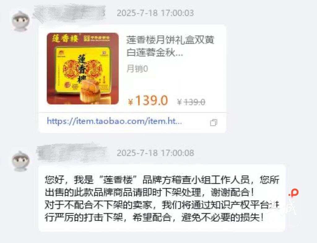 莲香楼公司向记者反映,在7月中开始,有杭州、长沙、广州经销商陆续收到电商平台要求下架处理由莲香楼公司生产的月饼。经销商还收到一份由广州老字号投资控股有限公司(以下简称“老字号公司”)在2025年7月22日落款、盖章的《关于“莲香楼”商标授权事宜的情况说明》(以下简称《说明》)。